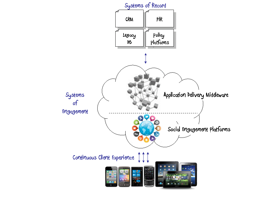 As traditional L&P organisations move to a more customer-focused model and greater embrace mobile and social technologies, the underlying platforms must be enabled as systems of engagement. New entrants to the market will have the advantage with greater flexibility in developing such systems.