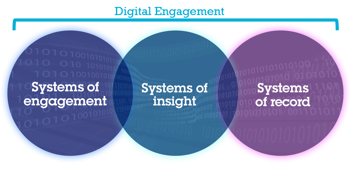 Digital engagement probably does start with the systems of engagement – the technologies that focus on people, not process, which include front ends that allow users to interact with an organisation. And we need to think about aesthetics, but more importantly about design (design is ensuring something works well, not that it looks good.) But I believe it takes more than systems of engagement to do the job properly.